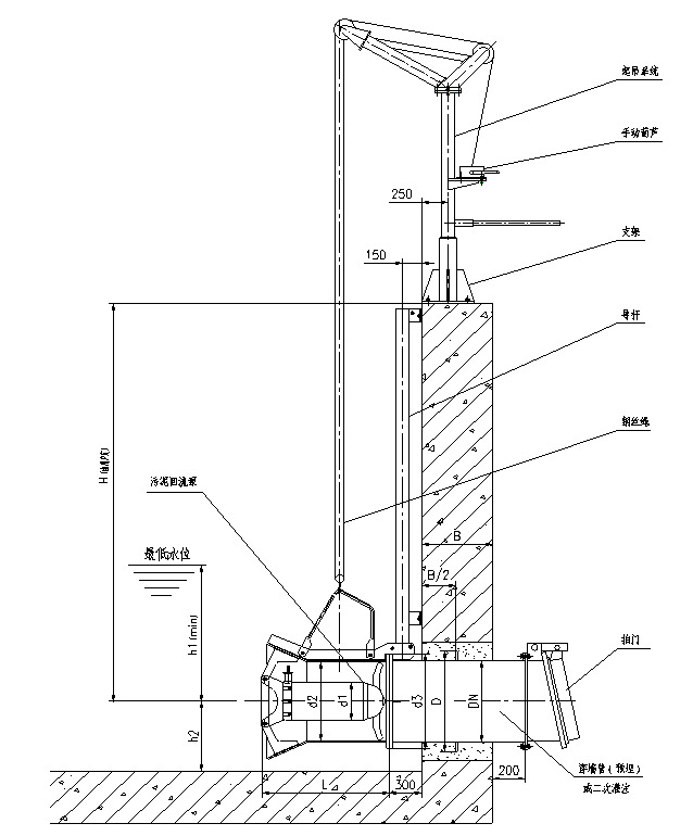 3. 本設備除穿牆管需要預埋外,導杆、起吊架均用鋼…膨🧜🏼‍♀️脹螺栓🤶🏾與池體連接,不需要預埋件。